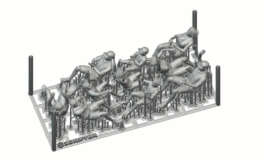 Each figure is delivered unpainted and with supporting structures.