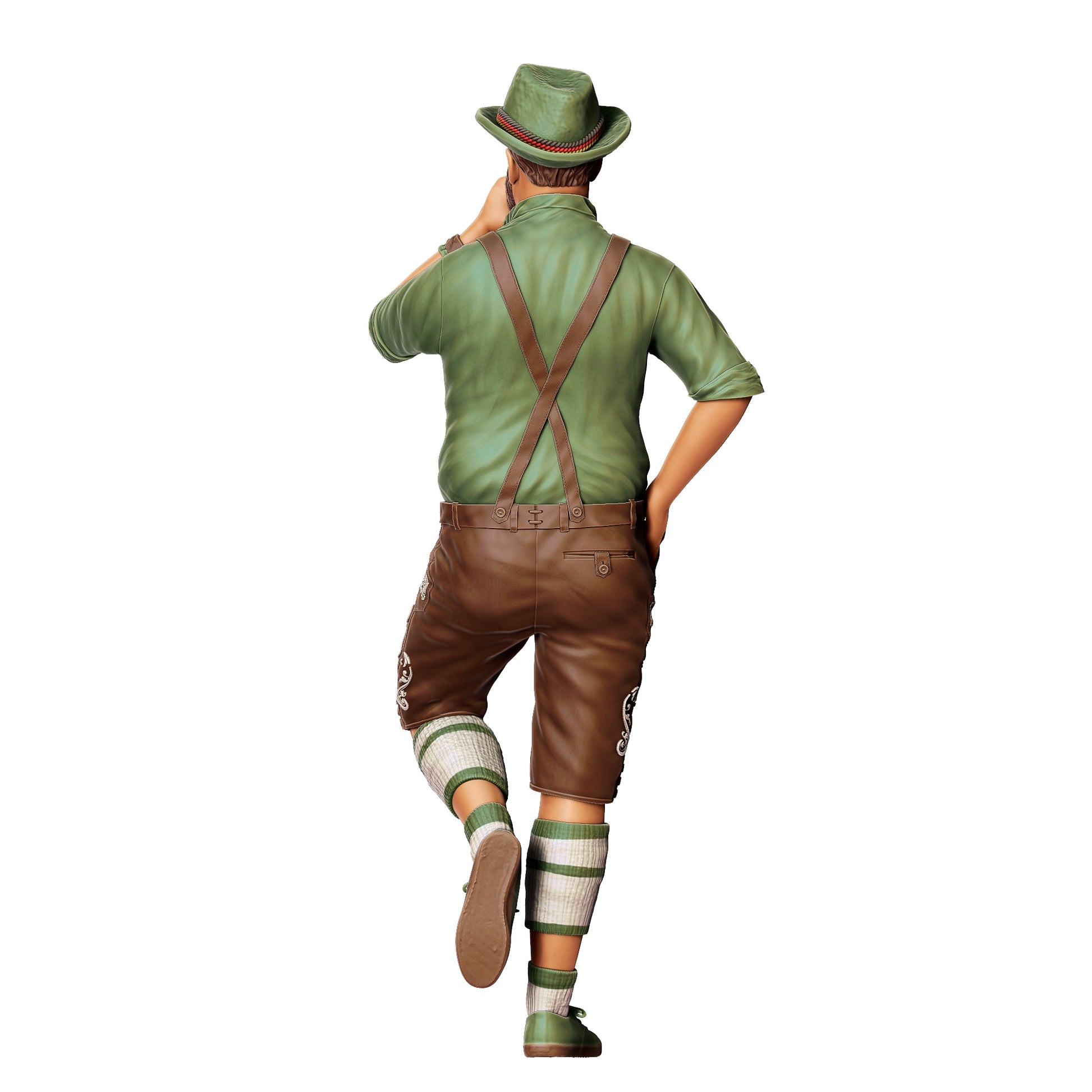 The 3D printed miniature figure 'Oktoberfest: Meadow guests: Man with traditional outfit and beer mug' is a single figure and available in the scales 1:10, 1:12, 1:14, 1:16, 1:18, 1:20, 1:22.5 - Gauge 2, 1:24 - Gauge H, 1:32 - Gauge 1, 1:35, 1:43, 1:48 - Gauge 0, 1:50, 1:64 - Gauge S. It is perfect for diorama and model building projects, as well as for embellishing slot car race tracks or model railways.